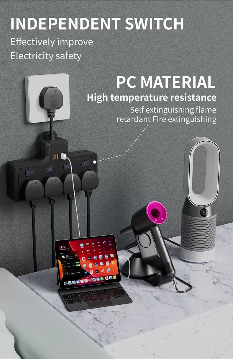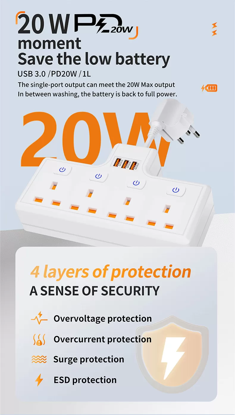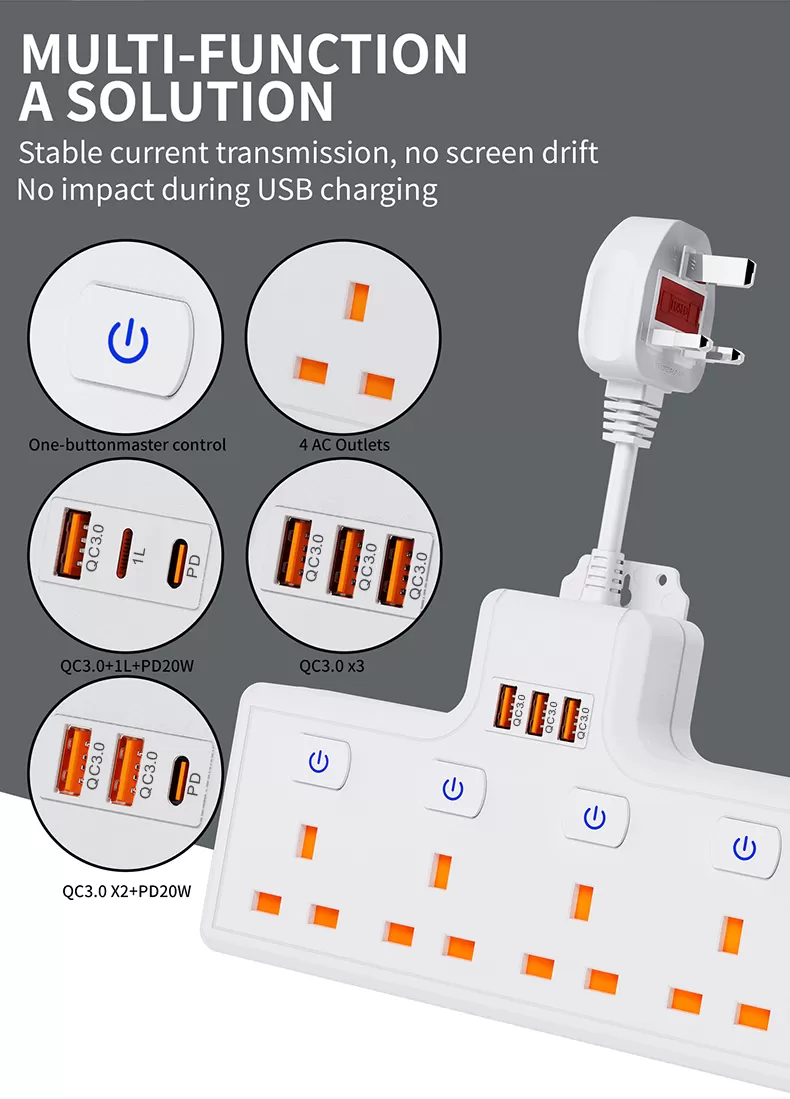 Multiple AC Sockets Design: 4 AC sockets layout meets the need for multiple appliances to be connected simultaneously, solving the problem of insufficient sockets.