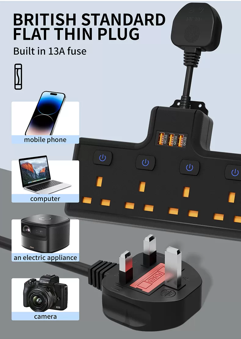 Created with High-quality Materials: Made of ABS and PC materials, sturdy, durable, and flame-retardant, ensuring the stability and safety of the socket for long-term use.