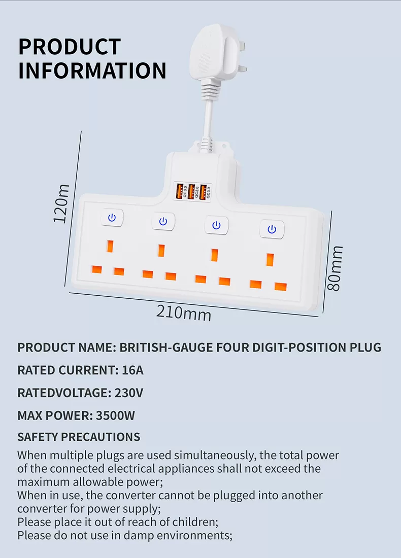 Dual Safety Protection Functions: Built-in overload protection and short-circuit protection effectively prevent electrical risks, providing a guarantee for household electrical safety.